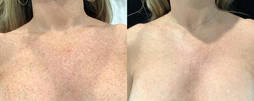 Vous remarquerez une amélioration de l'éclat dès la première séance. Les taches pigmentaires foncent légèrement avant de s'estomper naturellement après environ 7 à 10 jours, révélant une peau plus claire.